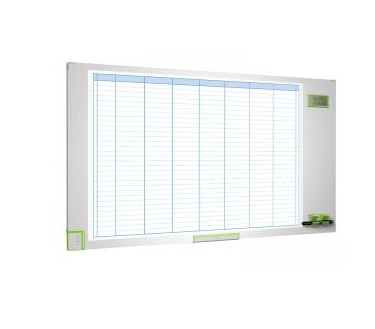Magnetický povrch stíratelný za sucha Pomocné linie vykreslují 21 řádků a 7 sloupců plus indexový sloupec, zpřehledňují plánované akce týdne Indexové okénko pro zapsání správného data pro každý den Magnetický držák na popisovače LCD ukazatel času a data Lehká hliníková konstrukce Povrchová úprava dodává elegantní vzhled ušlechtilé nerezové oceli Rozměr: 1040x600x27 mm Dodává se včetně 3 kusů popisovačů, 30 kusů magnetů a montážní sady |