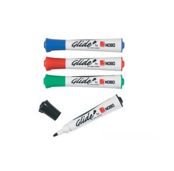 Vhodné pro všechny typy bílých tabulí stíratelných za sucha Velmi syté barvy Kulatý hrot Šíře linie 3 mm V balení 4 kusy Pro dokonale setřený povrch doporučujeme používat čisticí roztok určený pro tyto účely a pravidelně měnit stírací vložku stěrky |