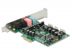 Tato PCI Express zvuková karta od Delocku rozšiřuje systém o různé zvukové vstupy a výstupy a má 8 zvukových kanálů. To umožňuje připojit zařízení, jako jsou reproduktory, sluchátka apod.Při použití ve spojení se sluchátky s mikrofonem je zvuková karta ideální pro aplikace jako Skype nebo hry. Za použití přiložené low profile záslepky můžete PCI Express kartu také nainstalovat do Mini-PC. Specifikace • Konektor: externí: 1 x 3,5 mm stereo jack line-In 1 x 3,5 mm stereo jack mikrofon vstup (L, R) 1 x S/PDIF TOSLINK optický digitální vstup 1 x S/PDIF TOSLINK optický digitální výstup 1 x 3,5 mm stereo jack přední reproduktor (L, R) (dceřiná karta) 1 x 3,5 mm stereo jack Surround reproduktor (L, R) (dceřiná karta) 1 x 3,5 mm stereo jack center / bass reproduktor (dceřiná karta) 1 x 3,5 mm stereo jack zadní reproduktor (dceřiná karta) interní: 2 x 10 pin konektor pro dceřinou kartu 1 x 4 pin konektor pro analogový port CD-In (signál: L-G-G-R) 1 x 4 pin konektor pro analogový port CD-In (signál: G-R-G-L) 1 x 9 pin konektor pro připojení předního panelu 1 x PCI Express x1, V1.1 • Chipset: CMedia CM8828 multi-kanálový audio procesor CMedia CM9882A 8-kanálový HDA Codec • Až do 24 Bit / 192 kHz vzorkovací frekvence pro záznam a přehrávání • Poměr signálu a šumu (SNR): ca. 92 dB • Podporuje ASIO a WASAPI • Podporuje 7.1 kanálový zvuk Systémové požadavky • Windows 7/7-64/8.1/8.1-64/10/10-64 • PC s jedním volným PCI Express slotem a jedním zadním slotem Obsah balení • Karta PCI Express • Dceřiná karta • 2 x záslepka do slotu • 1 x plochý pásový kabel • CD ROM s ovladači a software • Uživatelská příručka Balení • Kartonová krabice |