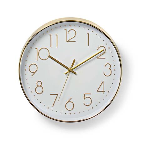 Tento Nedis® Kulatý Budík v sobě kombinuje jednoduchost, styl a velké, dobře čitelné číslice, přičemž zlatavé prvky jsou zde v kontrastu s bílým pozadím.<br />Hodiny lze snadno pověsit na stěnu, o napájení se stará 1x baterie AA (není součástí balení) a jsou vybaveny strojkem Quartz, který zajišťuje preciznost a přesnost.
