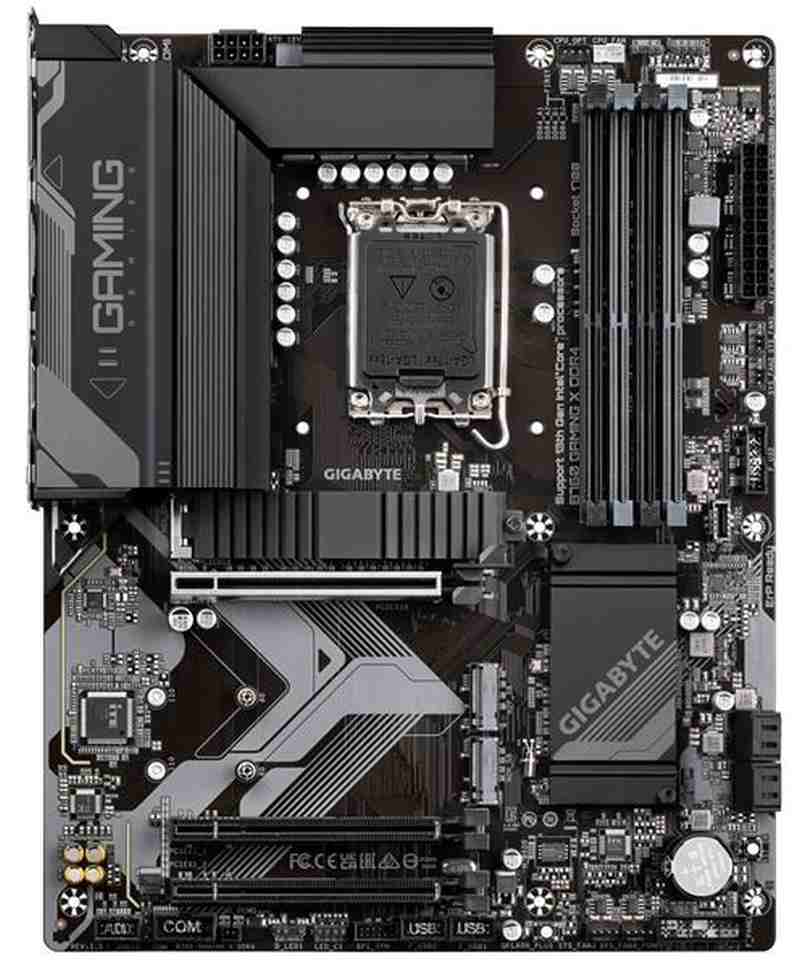 Intel® Socket LGA 1700:Support 13th and 12th Gen Series Processors Unparalleled Performance:Hybrid 8+1+1 Phases Digital VRM Solution Dual Channel DDR4:4*DIMMs XMP Memory Module Support Next Generation Storage:3*PCIe 4.0 x4 M.2 Connectors Advanced Thermal Design & M.2 Thermal Guard:To Ensure VRM Power Stability & M.2 SSD Performance EZ-Latch:PCIe 4.0x16 Slot with Quick Release Design Fast Networks:2.5GbE LAN Extended Connectivity:Front USB-C® 10Gb/s, DP, HDMI Smart Fan 6:Features Multiple Temperature Sensors, Hybrid Fan Headers with FAN STOP Q-Flash Plus:Update BIOS Without Installing the CPU, Memory and Graphics Card CPU LGA1700 socket: Support for the 13th and 12th Generation Intel® Core™, Pentium® Gold and Celeron® Processors L3 cache varies with CPU (Please refer "CPU Support List" for more information.) Chipset Intel® B760 Express Chipset Memory Support for DDR4 5333(O.C.)/ 5133(O.C.)/ 5000(O.C.)/ 4933(O.C.)/ 4800(O.C.)/ 4700(O.C.)/ 4600(O.C.)/ 4500(O.C.)/ 4400(O.C.)/ 4300(O.C.)/ 4266(O.C.)/ 4133(O.C.)/ 4000(O.C.)/ 3866(O.C.)/ 3800(O.C.)/ 3733(O.C.)/ 3666(O.C.)/ 3600(O.C.)/ 3466(O.C.)/ 3400(O.C.)/ 3333(O.C.)/ 3300(O.C.)/ 3200/ 3000/ 2933/ 2666/ 2400/ 2133 MT/s memory modules 4 x DDR DIMM sockets supporting up to 128 GB (32 GB single DIMM capacity) of system memory Dual channel memory architecture Support for ECC Un-buffered DIMM 1Rx8/2Rx8 memory modules (operate in non-ECC mode) Support for non-ECC Un-buffered DIMM 1Rx8/2Rx8/1Rx16 memory modules Support for Extreme Memory Profile (XMP) memory modules (Please refer "Memory Support List" for more information.) Onboard Graphics Integrated Graphics Processor-Intel® HD Graphics support: 1 x DisplayPort, supporting a maximum resolution of 4096x2304@60 Hz * Support for DisplayPort 1.2 version and HDCP 2.3 1 x HDMI port, supporting a maximum resolution of 4096x2160@60 Hz * Support for HDMI 2.0 version and HDCP 2.3. (Graphics specifications may vary depending on CPU support.) Audio Realtek® Audio CODEC High Definition Audio 2/4/5.1/7.1-channel Support for S/PDIF Out * You can change the functionality of an audio jack using the audio software. To configure 7.1-channel audio, access the audio software for audio settings. LAN Realtek® 2.5GbE LAN chip (2.5 Gbps/1 Gbps/100 Mbps) Expansion Slots CPU: 1 x PCI Express x16 slot, supporting PCIe 4.0 and running at x16 (PCIEX16) * For optimum performance, if only one PCI Express graphics card is to be installed, be sure to install it in the PCIEX16 slot. Chipset: 2 x PCI Express x16 slots, supporting PCIe 3.0 and running at x1 (PCIEX1_1, PCIEX1_2) Storage Interface CPU: 1 x M.2 connector (Socket 3, M key, type 22110/2280 PCIe 4.0 x4/x2 SSD support) (M2A_CPU) Chipset: 2 x M.2 connectors (Socket 3, M key, type 22110/2280 PCIe 4.0 x4/x2 SSD support) (M2P_SB, M2M_SB) 4 x SATA 6Gb/s connectors RAID 0, RAID 1, RAID 5, and RAID 10 support for SATA storage devices USB Chipset: 1 x USB Type-C® port with USB 3.2 Gen 2 support, available through the internal USB header 1 x USB 3.2 Gen 2 Type-A port (red) on the back panel 4 x USB 3.2 Gen 1 ports (2 ports on the back panel, 2 ports available through the internal USB header) 1 x USB 2.0/1.1 port on the back panel Chipset+2 USB 2.0 Hubs: 8 x USB 2.0/1.1 ports (4 ports on the back panel, 4 ports available through the internal USB headers) Internal I/O Connectors 1 x 24-pin ATX main power connector 1 x 8-pin ATX 12V power connector 1 x CPU fan header 1 x CPU fan/water cooling pump header 3 x system fan headers 1 x system fan/water cooling pump header 2 x addressable LED strip headers 2 x RGB LED strip headers 3 x M.2 Socket 3 connectors 4 x SATA 6Gb/s connectors 1 x front panel header 1 x front panel audio header 1 x S/PDIF Out header 1 x USB Type-C® header, with USB 3.2 Gen 2 support 1 x USB 3.2 Gen 1 header 2 x USB 2.0/1.1 headers 1 x Trusted Platform Module header (For the GC-TPM2.0 SPI/GC-TPM2.0 SPI 2.0 module only) 1 x serial port header 1 x Q-Flash Plus button 1 x reset button 1 x reset jumper 1 x Clear CMOS jumper Back Panel Connectors 1 x USB 3.2 Gen 2 Type-A port (red) 2 x USB 3.2 Gen 1 ports 5 x USB 2.0/1.1 ports 1 x DisplayPort 1 x HDMI port 1 x RJ-45 port 6 x audio jacks I/O Controller iTE® I/O Controller Chip H/W Monitoring Voltage detection Temperature detection Fan speed detection Water cooling flow rate detection Fan fail warning Fan speed control * Whether the fan (pump) speed control function is supported will depend on the fan (pump) you install. BIOS 1 x 256 Mbit flash Use of licensed AMI UEFI BIOS PnP 1.0a, DMI 2.7, WfM 2.0, SM BIOS 2.7, ACPI 5.0 Unique Features Support for GIGABYTE Control Center (GCC) * Available applications in GCC may vary by motherboard model. Supported functions of each application may also vary depending on motherboard specifications. Support for Q-Flash Support for Q-Flash Plus Bundled Software Norton® Internet Security (OEM version) LAN bandwidth management software Operating System Support for Windows 11 64-bit Support for Windows 10 64-bit Form Factor ATX Form Factor; 30.5cm x 24.4cm |