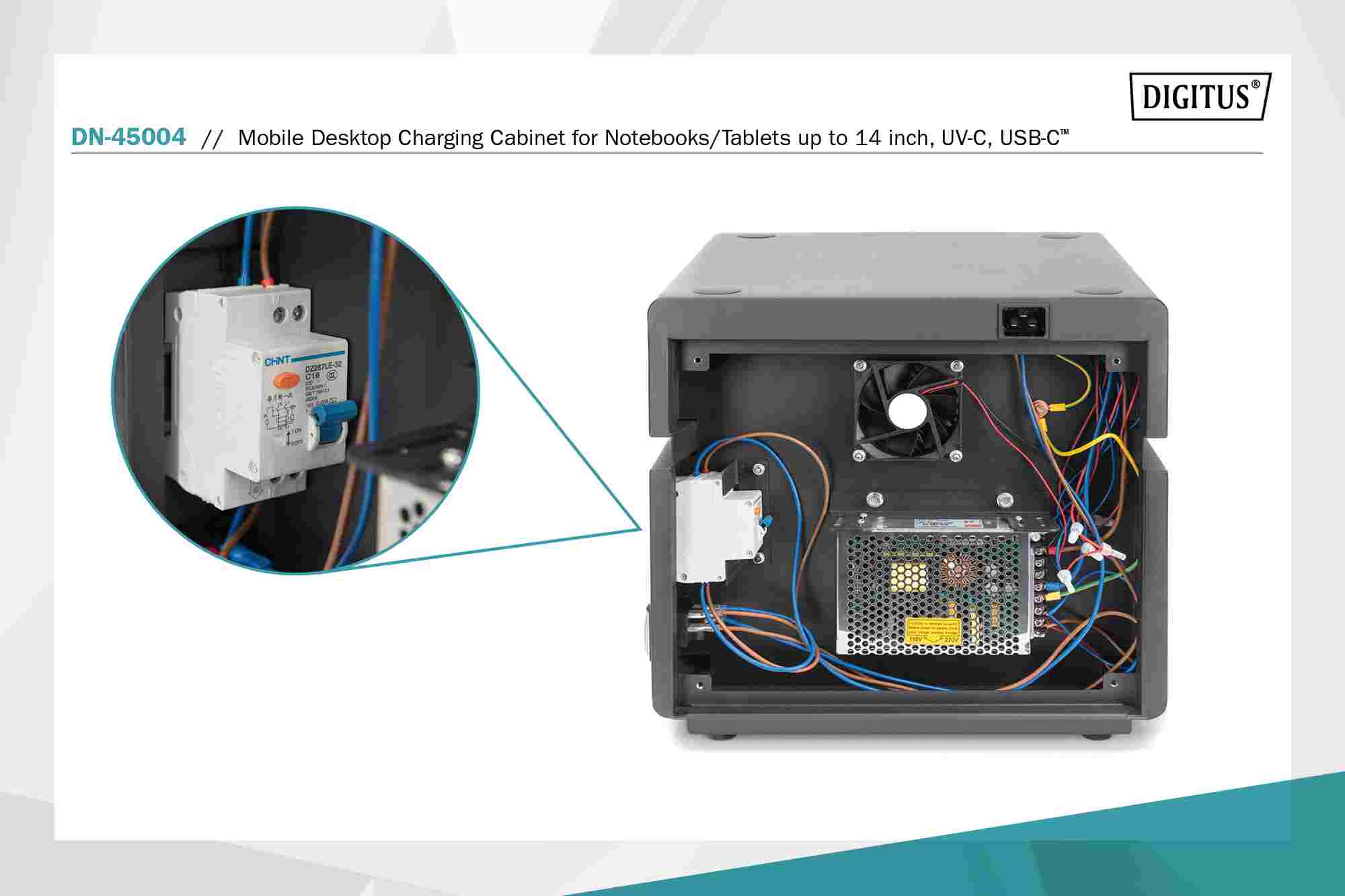 DIGITUS mobilní stolní nabíjecí skříňka pro tablety do 14 palců, 10 zařízení. UV-C, USB-C ( až 20W na zařízení)