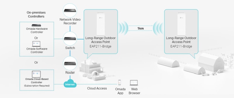 Pomocí TP-Link EAP211-Bridge KIT snadno vytvoříte transparentní spoj na vzdálenost až 1km. Díky standardu 802.11ac dosahuje linkové rychlosti až 867Mbps v pásmu 5GHz. Nechybí podpora technologií jako Mesh, MU-MIMO, Beamforming. Pro maximálně efektivivní nasazení podporují jednotky automatické párovaní a integraci do aplikace Omada SDN pro vzdálenou a centralizovanou správu.