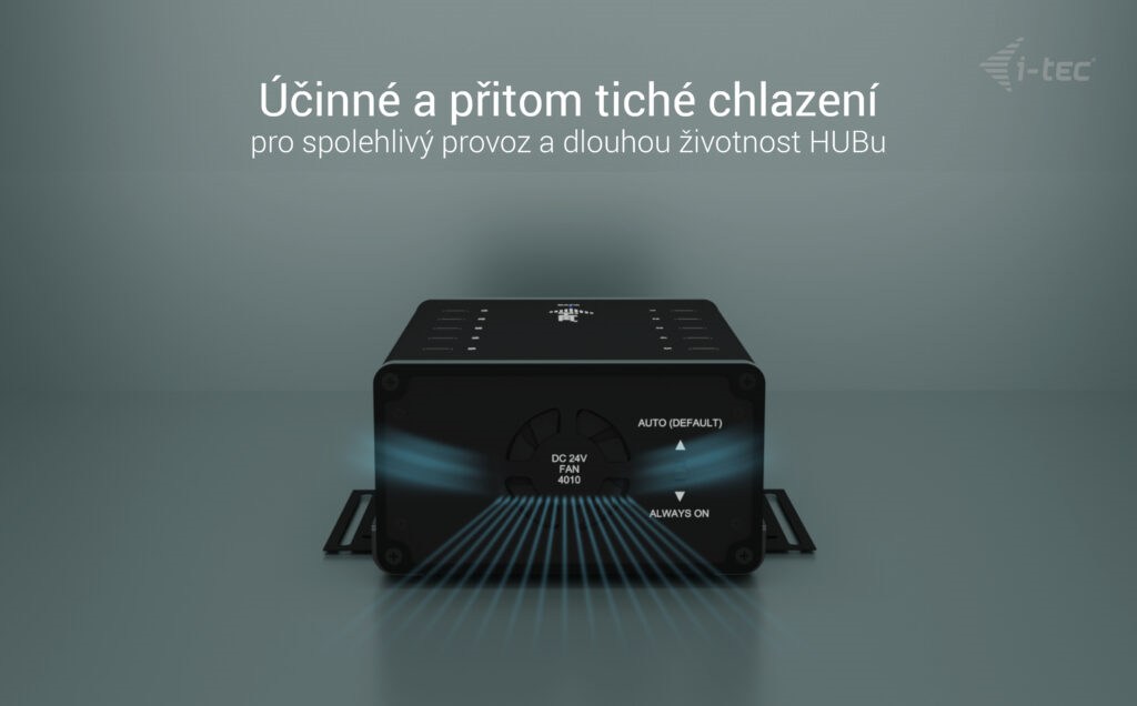 Popis Tento moderní HUB nabízí 10 USB-C s funkcí Plug & Play a nabíjením až 15W na port. Díky tomu, že HUB má 10 USB portů, je možno nabíjet až 10 zařízení najednou. Zároveň porty umožňují datový přenos: dva USB porty (1 a 6) umožňují přenos 5 Gbps a zbývající porty podporují rychlost až 480 Mbps (USB 2.0). HUB nevyžaduje instalaci ovladačů, pouze jej pomocí USB kabelu připojíte ke svému počítači a můžete jej ihned začít využívat. HUB má vestavěnou přepěťovou ochranu vašeho počítače pro případ zkratu na periferních zařízeních. V případě, že HUB budete využívat pouze pro nabíjení, není potřeba jej připojovat k počítači. Integrovaný napájecí adaptér o výkonu 180 W 10x USB-C port, všechny podporují 15 W nabíjení 2 porty nabízí datový přenos o rychlosti až 5 Gbps 8 portů nabízí datový přenos o rychlosti až 480 Mbps Přepěťová a proudová ochrana Obsahuje sadu kovových držáků pro pevnou volitelnou instalaci na stůl. Specifikace 1x port USB-C 3.2 gen.1 pro připojení k hostitelským zařízením 2x port USB-C (1 a 6) podporující přenosovou rychlost až 5 Gb/s 8x port USB-C podporující přenosovou rychlost až 480 Mb/s Každý port USB-C podporuje až 15W nabíjecí výkon (5V/9V/12V) a rychlé nabíjení (BC 1.2) 1x vstup napájení: AC 100-240V ~ 50/60Hz 2,2A (MAX) Celkový výstupní výkon: 150 W 1x vypínač pro zapnutí/vypnutí napájení výrobku 1x Přepínač pro ovládání ventilátorů (režimy: AUTO, Always ON) LED indikace napájení LED indikace dat hostitele Datový kabel USB-C (100 cm) Datový kabel USB-C na USB-A (100 cm) Přepěťová a nadproudová ochrana OS: Windows 10/11, macOS, Linux, ChromeOS Rozměry produktu: 154 x 109 x 62 mm Hmotnost produktu: 760 g SYSTÉMOVÉ POŽADAVKY Hardwarové požadavky: Zařízení s dostupným portem USB-A, USB-C, USB4, Thunderbolt™3/4. Operační systém: Windows 10/11, macOS, Linux, ChromeOS Obsah balení Produkt Napájecí kabel Datový USB-C kabel (100 cm) Datový USB-C na USB-A kabel (100 cm) Sada kovových držáčků na volitelné připevnění na stůl |
