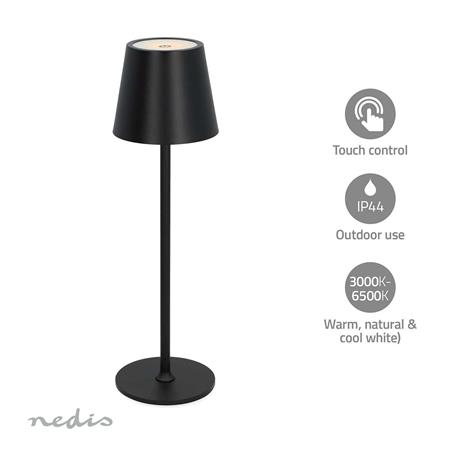LED | 1.8 W | 150 lm | 3000 - 6000 K | Černá • Dobíjecí venkovní LED stolní svítidlo • S plynule stmívatelným dotykovým ovládáním (teplá, přirozená a studená bílá) • Stylový a moderní design se zúženým hliníkovým tlakově litým stínítkem • S integrovaným nabíjecím portem USB-C • Vestavěná dobíjecí li-ion baterie s max. dobou svícení až 40 hodiny • Ideální pro použití v ložnici, studovně, obývacím pokoji nebo jídelně • S krytím IP44 pro venkovní použití v barech, kavárnách, restauracích, hotelech a kempech • Vybaveno váženou základnou pro lepší stabilitu lampy Specifikace produktu Šířka 115 mm Výška 280 mm Hloubka 115 mm Hmotnost 713 g Barva Černá Materiál ABS Hliník Plast Dobíjecí Ano Typ zdroje napájení Napájení z baterie Délka napájecího kabelu 1.00 m Vstupní napětí 5 V DC Index podání barev (Ra) 80 Včetně žárovky Integrované Technologie LED Včetně baterií Ano Jmenovitá životnost žárovky 15000 h IP krytí IP44 Požadované baterie (součástí balení) Vestavěný Lithium-Ion Stmívatelné Ano Jmenovitý světelný tok 150 lm Energetická třída E Startovní čas Méně než 0,2 s Zahřívací doba na 60% svítivosti Méně než 0,5 s Okolní teplota -20 - 40 °C Příkon 1.8 W Počet produktů v balení 1 kusů Silový faktor ? 0.6 Počet spínacích cyklů 15000 Spínacích Cyklů Barva světla Teplé až chladné bílé Barevná teplota 3000 - 6000 K Spotřeba energie za 1 000 hodin 1.8 kWh Úhel paprsku 80 ° Lumen faktor 0 % |