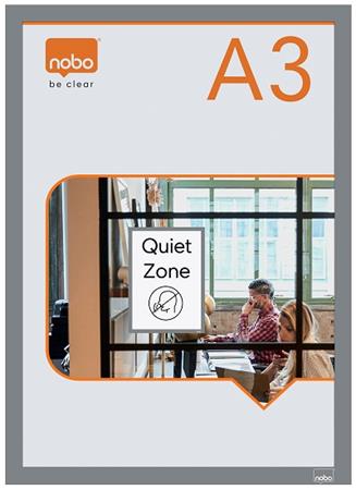 Samolepicí magnetický plakátový rám pro bezpečné vystavení plakátů, nápisů a informací. Magnetický proužek ve spodní části rámu umožňuje rychlou a snadnou výměnu obsahu. Díky přilnavé vrstvě se rám pevně připevní na rovný povrch na výšku, nebo na šířku. Průhledný matný kryt pomáhá chránit obsah pod ním a lze jej otřít. Zobrazovací plocha formátu A3. Balení 2 stříbrných rámů na plakáty. Vytvořte si vlastní cedule. Více než 100 šablon si můžete stáhnout zdarma na webové stránce Nobo Sign Maker." |