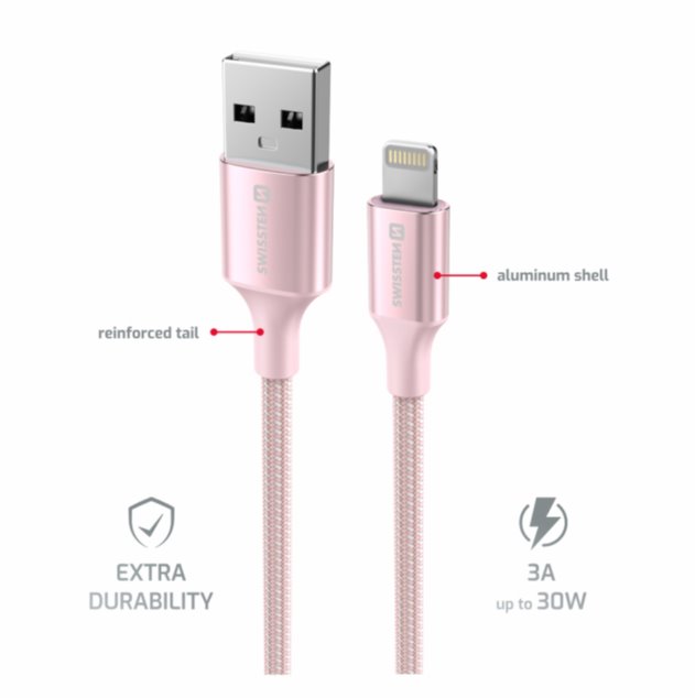 SWISSTEN DATOVÝ KABEL SWISSTEN TEXTILE II USB / LIGHTNING 1,5 M RŮŽOVÝ