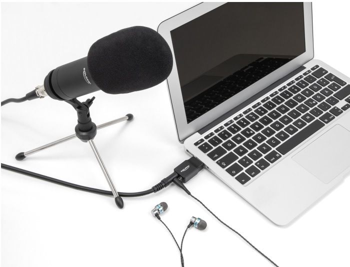 Tento zvukový adaptér značky Delock rozšíří PC, laptop nebo tablet o jednu další externí zvukovou kartu. Kompaktní stereofonní zvuk Výstupní stereofonní konektor 3,5 mm nabízí maximální vzorkovací rozlišení a frekvenci až 16 bitů / 48 kHz, takže svou oblíbenou hudbu si můžete přehrávat v kvalitě zvuku DVD. Konektor mikrofonu K 3,5 mm konektoru mikrofonního vstupu tohoto adaptéru lze připojit například počítačový mikrofon, a tak vytvářet vysoce kvalitní zvukové záznamy o maximálním vzorkovacím rozlišení a frekvenci 16 bitů / 48 kHz. To činí tento adaptér ideálním k videochatům, streamingu a hraní her. Plug & Play Díky USB Plug & Play je adaptér okamžitě připravený k použití a není potřeba instalovat žádné ovladače. Adaptér funguje se všemi běžnými operačními systémy, jako jsou Windows, Mac OS, Chrome OS a Linux. Technické detaily • Konektor: 1 x USB 2.0 Typ-A samec 1 x zásuvkový stereofonní 3-pinový konektor pro reproduktor, rozměr 3,5 mm 1 x zásuvkový monofonní 3-pinový konektor pro mikrofon, rozměr 3,5 mm • Až do 16 Bit / 48 kHz vzorkovací frekvence pro záznam a přehrávání • Plug & Play • Materiál pouzdra: ABS plast • Barva: černá • Rozměry (DxŠxV): cca. 38,0 x 23,0 x 11,8 mm Systémové požadavky • Chrome OS 116.0 nebo vyšší • Linux Kernel 5.11 nebo vyšší • Mac OS 13.1 nebo vyšší • Windows 10/10-64/11 • PC nebo notebook s volným USB Typ-A portem Obsah balení Audio adaptér Uživatelská příručka Balení Kartonová krabice |