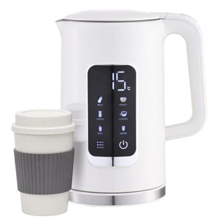 Technické specifikace Kapacita: 1,7l. Materiál: nerezová ocel 304 uvnitř, PP vnější Pět teplotních stupňů: mléko 40°C, med 70°C, zelený čaj 80°C, káva 90°C, vroucí voda 100°C Automatické otevírání víka Velký otvor pro snadné plnění a čištění vody Vnitřní část je vyrobena z jednoho prvku (bez spojení mezi základnou a stěnami) Funkce udržování teploty po dobu 2 hodin s funkcí paměti Výkon: 220-240V, 50-60Hz, 1850-2200W Pouzdro se nezahřívá Atraktivní velký digitální displej Zdarma: kelímek 450 ml z ekologického a odolného materiálu: pšeničná sláma (bioplast). Na rozdíl od běžného plastu, který se vyrábí z ropy, je bioplast vyroben z rostlinných zdrojů. Pšeničná sláma, stejně jako tradiční plasty, je lehká a odolná, plast z vláken pšeničné slámy je certifikován jako bezpečný pro potraviny, neobsahuje BPA a schválen FDA. Postarejte se s námi o budoucnost naší planety!" |