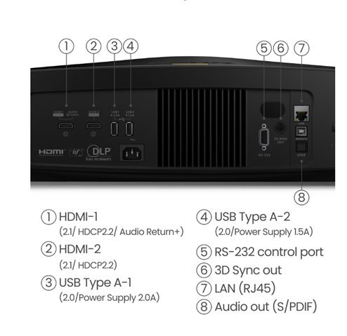 Díky unikátnímu projekčnímu poměru T/R 1,0-1,6 dokáže vytvořit obraz o uhlopříčce 180” ze vzdálenosti pouhé 4 m
